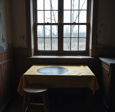 The road asphalt was cracked, overgrown with stunted grass and blue mushrooms. I walked through shady streets, past dilapidated houses. The path forked and ended in a pile of junk with bricks sticking out of it. To avoid getting my shoes dirty, I walked around the edge of the pile. Mud, mixed with last year’s leaves and dead grass, squished under my feet. The whole place was unfamiliar and looked like an abandoned cemetery. The path led to low shrubbery, behind which I could see a small, ramshackle house. I struggled through the thicket and approached the structure. The steps of the wooden porch had failed, the door was intact but had sagged and rubbed a groove in the floor. Creaking floorboards led me into a small room with cobwebs in the corners. There was a table by a low window, covered with a yellow and warped oilcloth with a black stain. I listened. The wind was whistling outside the window, and a dry birch branch beat against the glass. I sat down on a stool and realized that this was my house. And I was now alone in it.